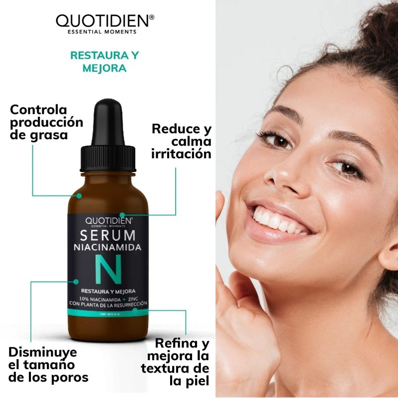 • 🌿 Mejora de la textura de la piel: La Niacinamida suaviza la textura de la piel y regula la producción de sebo, dejándola más equilibrada y menos propensa a imperfecciones.