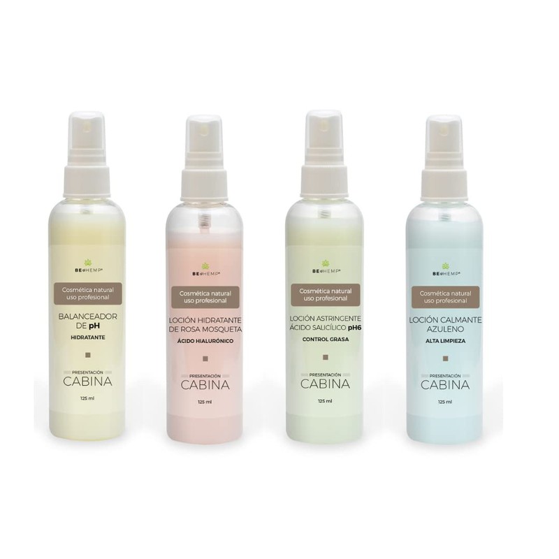 Kit 4 lociones, balanceador ph, astringente, rosas, azuleno Beohemp