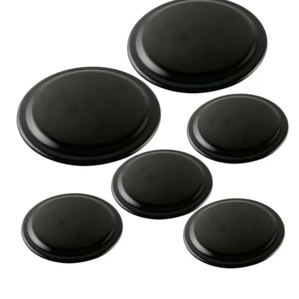 - CONJUNTO COMPLETO: Set de 6 tapas para cocina que incluye 4 tapas de tamaño mediano y 2 tapas jumbo de color negro