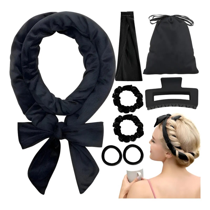 3. Set de peluquería multifuncional: Un set para satisfacer las necesidades de peluquería. El producto incluye un rizador sin calor con lazo, una bolsa de almacenamiento, una diadema de yoga, un anillo para el cabello, una horquilla e instrucciones de uso. Ya sea para rizar o atar el cabello, las herramientas son completas, lo que facilita la operación, mejora la eficiencia y la experiencia de peluquería, y es un producto práctico para peluqueros y quienes disfrutan creando peinados.