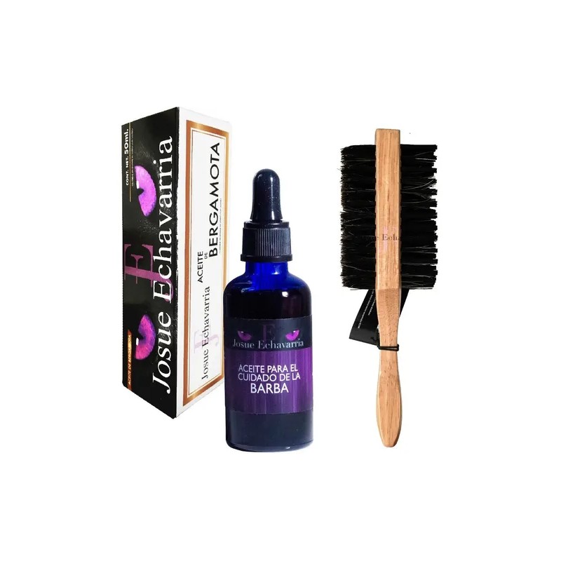 Kit Cuidado Barba Y Cepillo Doble Madera Josue Echavarria