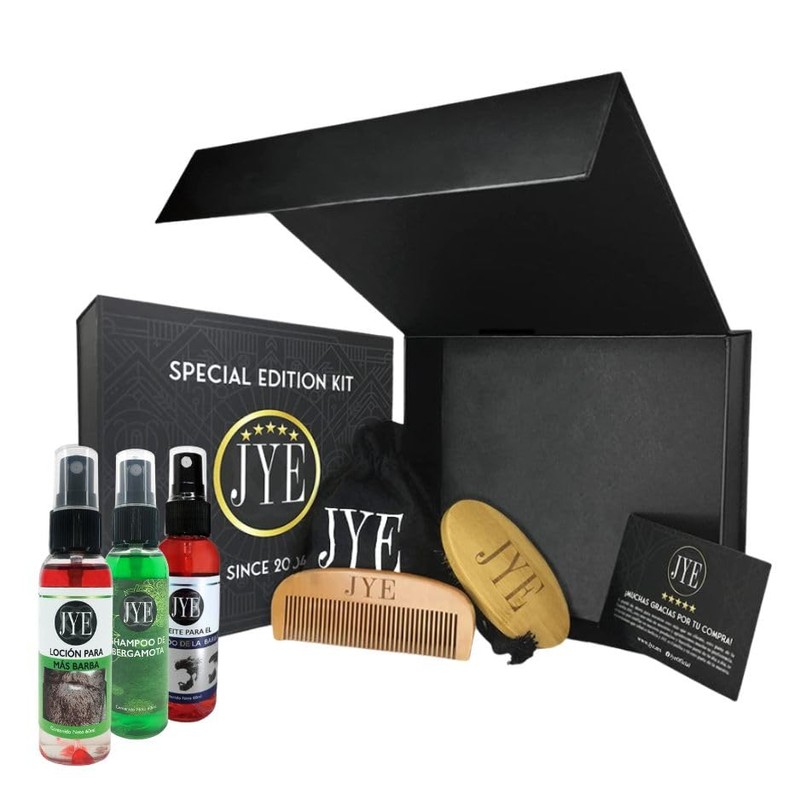 - Kit Barba y Bigote Incluye Loción Mas Barba, Aceite de Hidratación, Shampoo de Bergamota y Peine y Cepillo de Lujo JYE