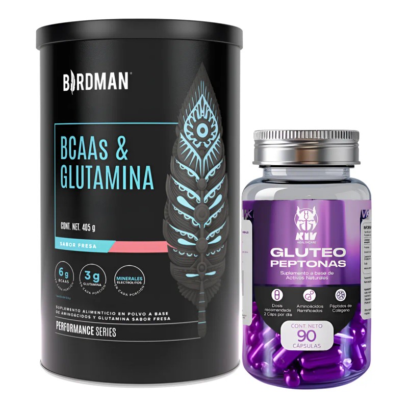 Kit Bcaas Glutamina Birdman Glteo Peptonas Kiv 90 Cps.