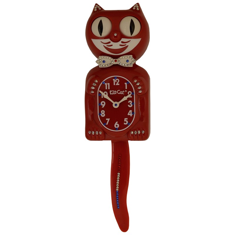 Kit-Cat Klock Red, White & Blue Crystals Jeweled Clock Jeweled Bow Tie , Numbers , Paws, Tail, Ears, Nose . This timeless character earned a place on your family’s walls for generations. Kit-Cat clock has a rich history and timeless smile.