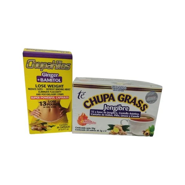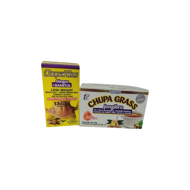 Kit Chupa Kilos 30 Caps + Te Jengibre Grass 30 Sobres