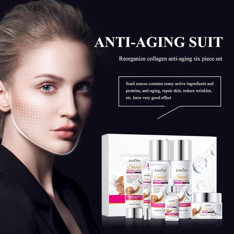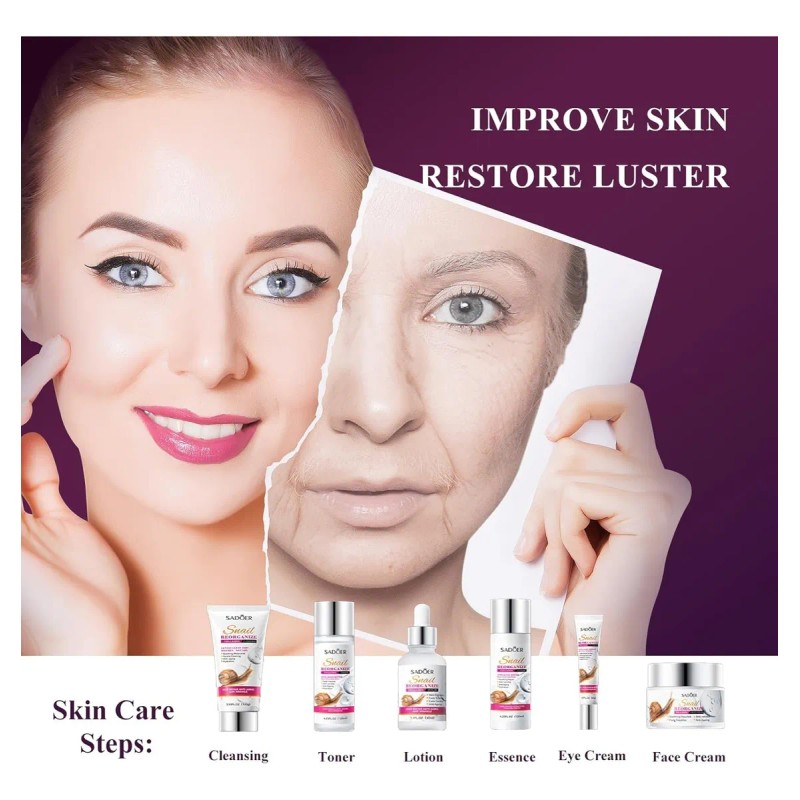 Kit Cuidado Facial 6 En 1 Sadoer Caracol Colágeno Antiedad Todo Tipo De Piel Día/noche