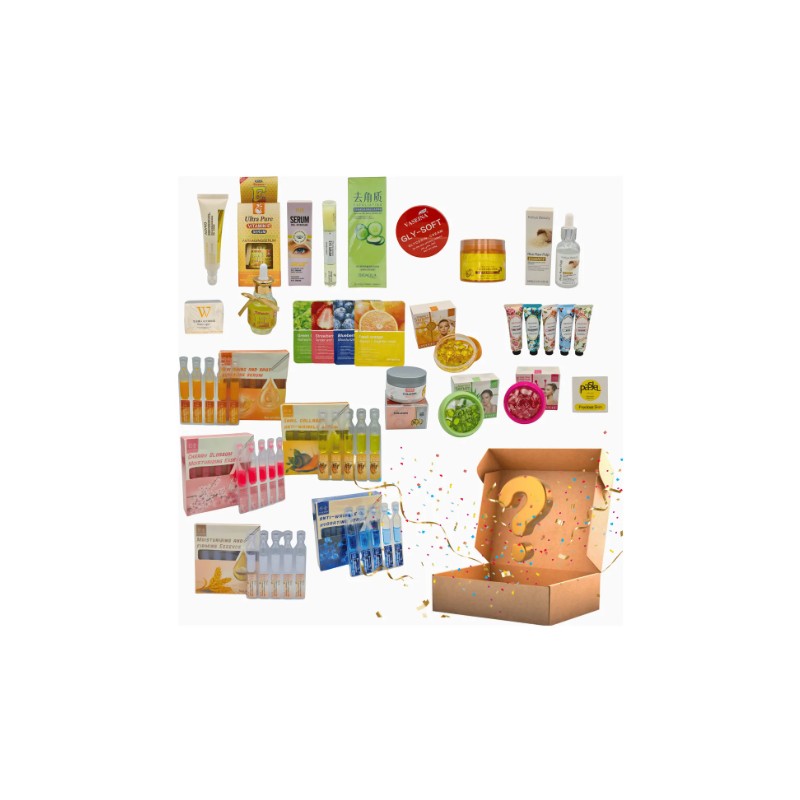 Este kit de cuidado personal incluye de 8 a 10 productos de alta calidad, como cremas, serums y mascarillas, con ingredientes naturales para nutrir y embellecer la piel. Además, puedes escoger un regalo especial de una selección limitada, como una maleta, bolso o pijama, entre otros, para completar tu experiencia de belleza. La selección es sorpresa y puede variar en colores y diseños, brindándote una experiencia personalizada y completa para consentirte.