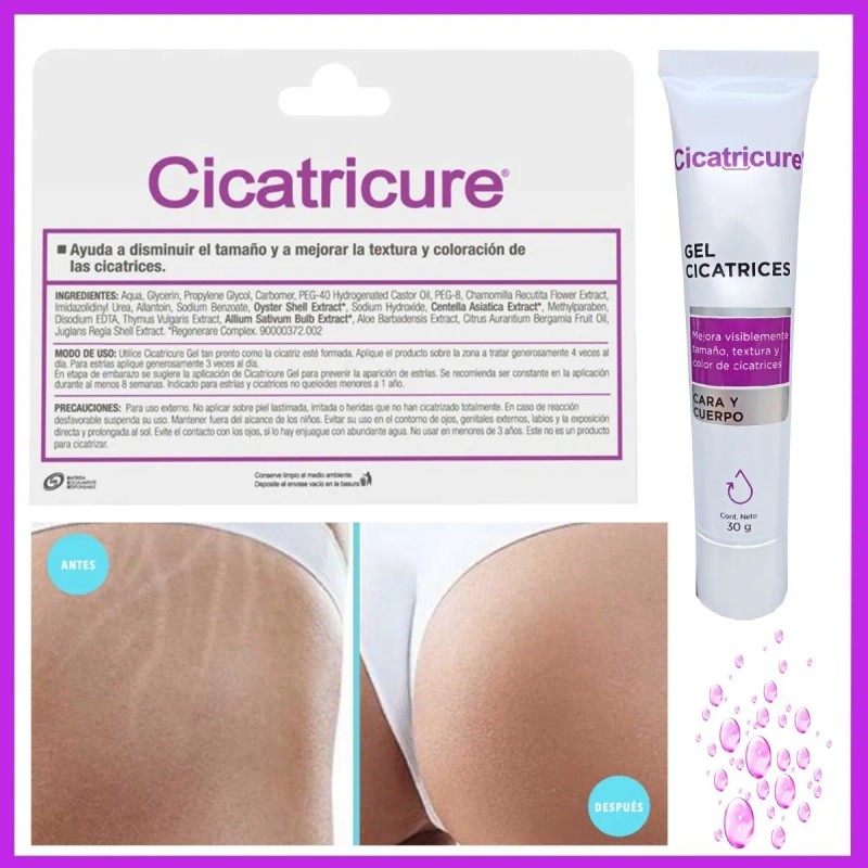 Gel para la piel que desvanece paulatinamente las cicatrices y desaparece notablemente arrugas y líneas de expresión. Gel que ayuda a disminuir visiblemente la longitud, el grosor y la coloración de cicatrices. Estimula la regeneración de las fibras de colágeno del tejido cutáneo a la vez que hidrata la piel.