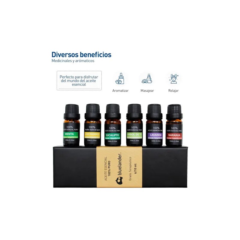 Kit De 6 Aceites Esenciales Para Difusor Aromaterapia 10 Ml