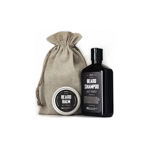 Bosque grande BARBA CARE - productos del champú y Barba Balm- para ayudar a hacer crecer el vello facial más completo; BARBA SHAMPOO 9,5 onzas líquidas - lava el exceso de sebo que inhibe el crecimiento de la barba; BARBA BÁLSAMO 2 OZ - Suaviza la barba, ayuda a proteger contra la caspa barba y pelo de la barba mantiene limpia, lisa, suave y libre de enredos; 100% Naturales y Orgánicos - Manly, madera, actividades al aire libre y aroma de pino infundido; Kit de aseo - De los creadores de Medicina de hombre que pica Barba Wash Todos nuestros productos estan en inglés SKU 4091925535