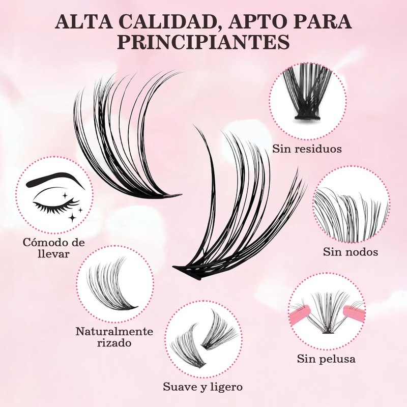 - 💖【DIY Cluster Lash Kit】:Las pestañas individuales están hechas de material PBT importado, que es ligero y suave y cómodo de llevar.Las pestañas en racimo utilizan tecnología termofusible para fortalecer las raíces, haciéndolas más estables y menos propensas a caerse cuando se sujetan con pinzas.Perfecto para todas las formas de ojos, perfecto tanto para principiantes como para amantes de las pestañas.