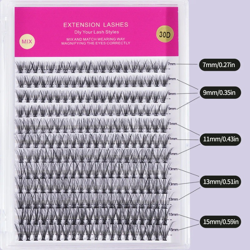 Estilo de Pestañas: 30D Fishtail Extensiones de Pestañas 7-15mm Pack Mixto
