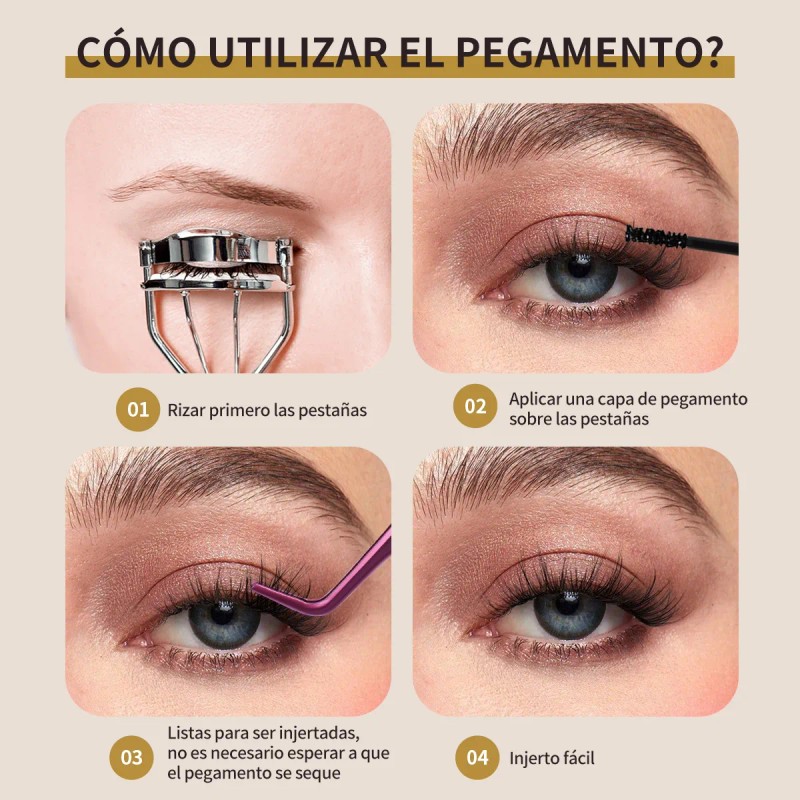 Kit De Extensiones De Pestañas Mink + Pegamento Mixto Rizado 240 Racimos Mage...