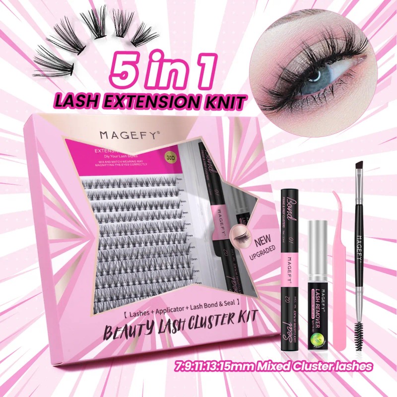 Kit De Extensiones De Pestañas Mink + Pegamento Mixto Rizado 240 Racimos Magefy Curl C Natural DIY 7-15mm Lashes Con Adhesivo para pestañas Y Removedor
