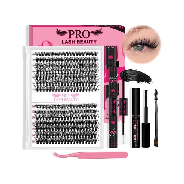PRO LASH BEAUTY kit de pestañas incluye: 1.280 piezas de pestañas mixtas de 9-16mm de largo 2.tubo con dos extremos: pegamento y sellador1 3.removedor de pestañas1 4.pinza aplicadora de pestañas1 5.cepillo para pestañas1