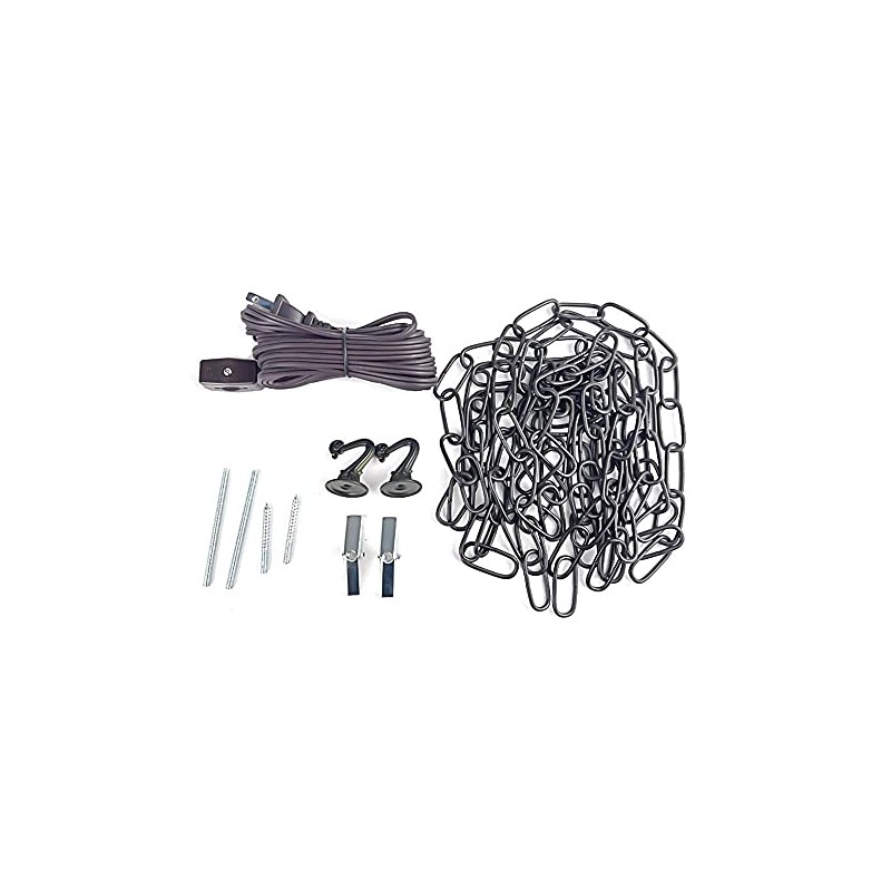 - El paquete incluye: cadena de 12 pies, juego de cables de 15 pies con interruptor, 2 ganchos y accesorios necesarios