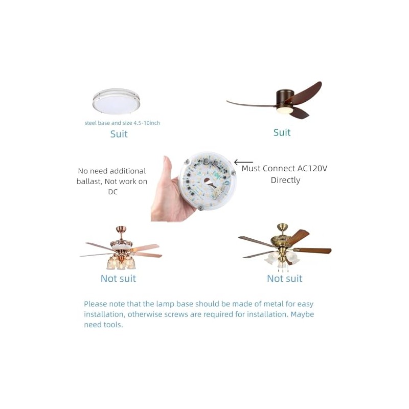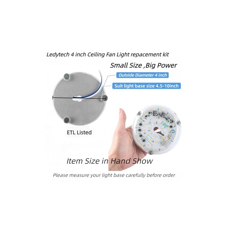 π β Kit de luz LED de 4 pulgadas para panel de repuesto de luz de ventilador de techo, PCB de 18 W, 6000 K, 2200 lm, 120 V, CRI90 regulable ETL (blanco 6000 K) β π