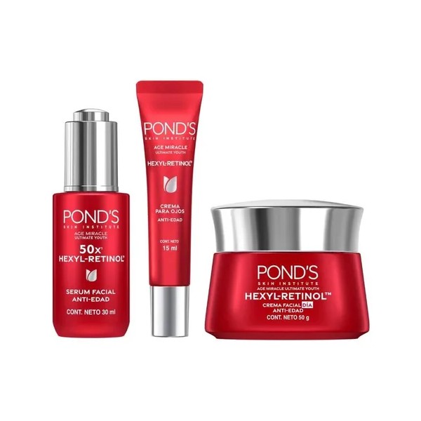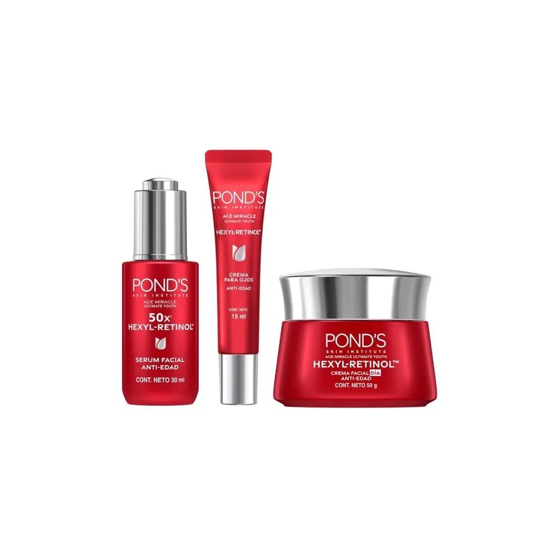 POND'S Age Miracle rutina de 3 pasos: Crema día + Crema Ojos + Sérum Facial, con HEXYL-RETINOL