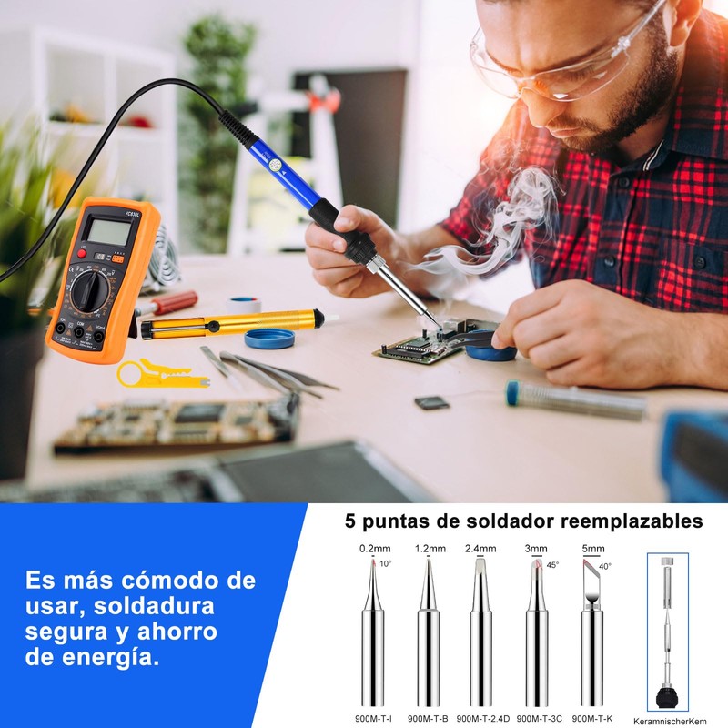 - 【Amplia gama de aplicaciones】el juego de soldador es adecuado para reparaciones en el hogar y la oficina, hardware de computadoras, reparaciones de teléfonos móviles, diseño de circuitos, placas base de teléfonos móviles, soldadura de joyas, bricolaje, artesanías, anteojos, relojes, consolas de juegos y otras reparaciones electrónicas, un variedad de puntas de soldador puede satisfacer sus diferentes necesidades