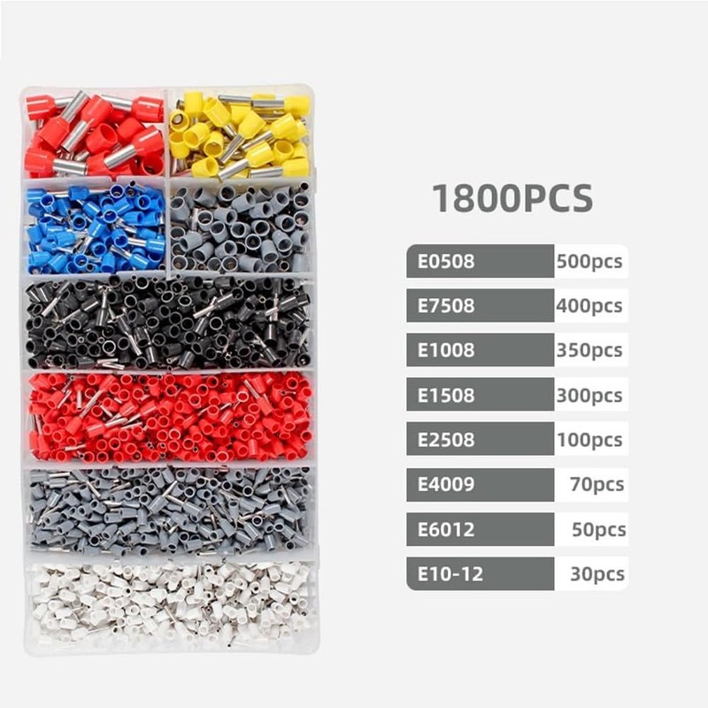 Kit de Terminales para Cables con Pinza Alicate Crimpadora de Trinquetes Abrazadera Alambre Engarzado Ponchador AWG Conectores Eléctricos Alambre con Terminales de Tubo Ferrules 0.25mm-10mm² (1800pzs)