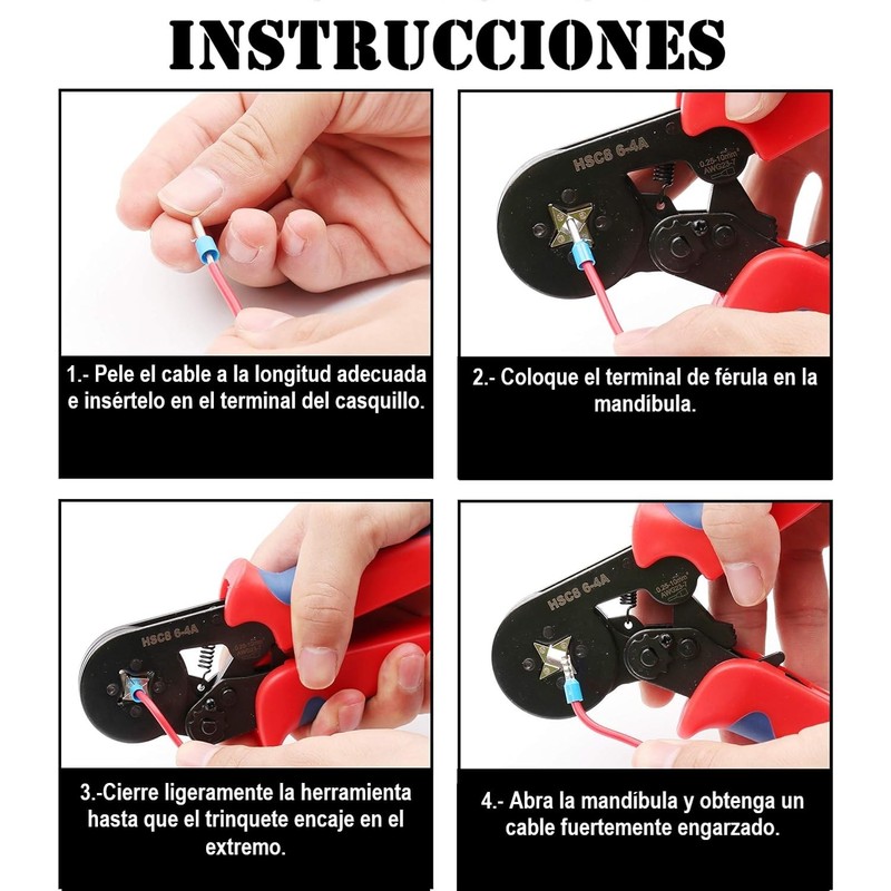 - Diseño de mango ergonómico: dispositivo de trinquete que ahorra trabajo. El mango de nailon antideslizante con principio de palanca está diseñado para mejorar los efectos de crimpado.