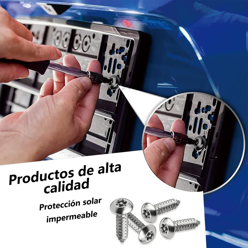 - Tornillo antirrobo para placa: ¿Te preocupa que te roben la matrícula? ¡No más! Este kit de tornillos de matrícula es la solución.El kit incluye dos destornilladores M6 únicos. Solo estos pueden aflojar los tornillos especiales. Excelente protección antirrobo. Deja sin recursos a los ladrones. Dale a tu matrícula una defensa sólida. Compra y evita el riesgo de robo. No dudes en adquirir este producto que te brinda tranquilidad y seguridad para tu vehículo.