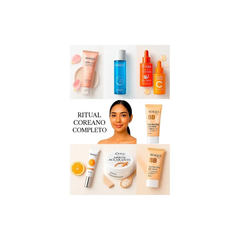 Kit Facial Coreano Bioaqua 6 Pasos | Aclarante, Antiarrugas