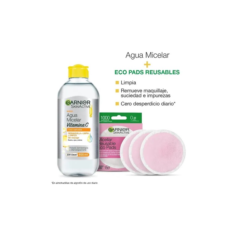 Kit Garnier Agua Micelar Express Aclara 400ml + 3 Ecopads