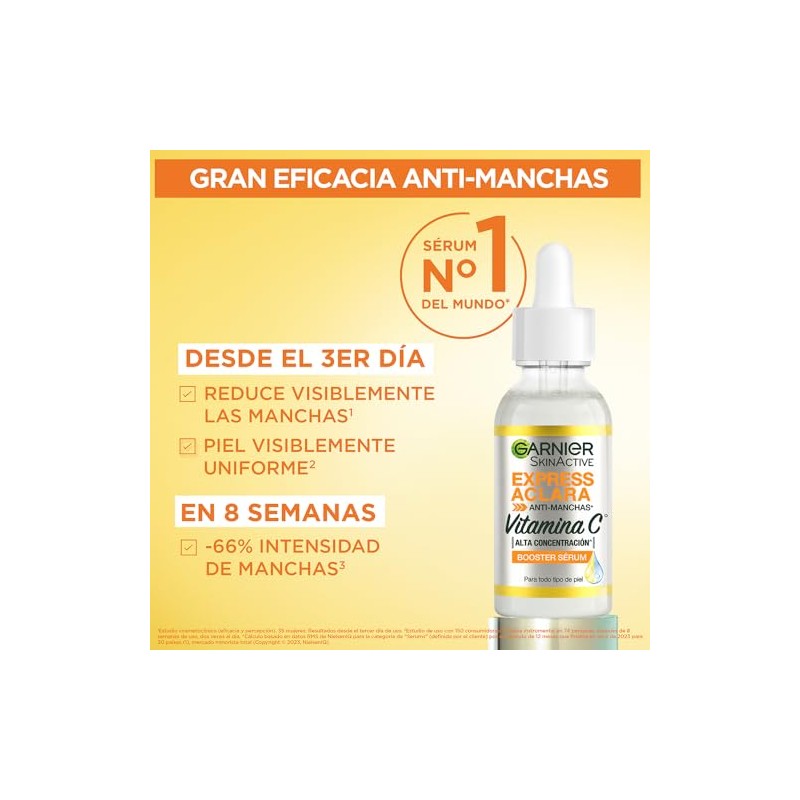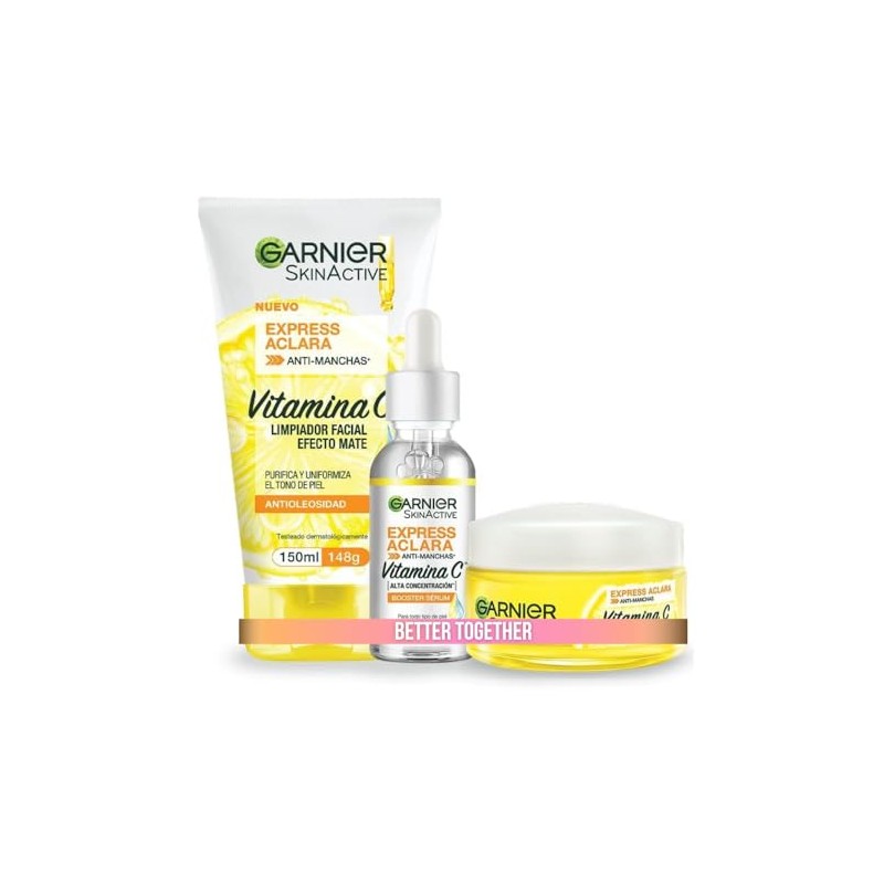 🌟 ⭐ Kit Garnier Express Aclara Rutina anti manchas con Vitamina C: Sérum facial, crema hidratante y gel limpiador, 3 piezas. Hidrata, ilumina y unifica el tono de la piel ⭐ 🌟