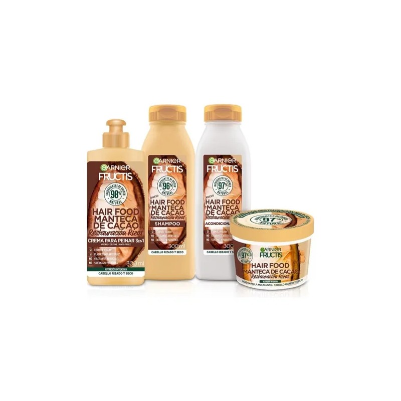 ¡Descubre la magia de una rutina capilar completa! 💇♀️ Con el Kit Garnier Fructis Hair Food Manteca de Cacao, tu cabello rizado y seco recibirá toda la nutrición y vitalidad que necesita.