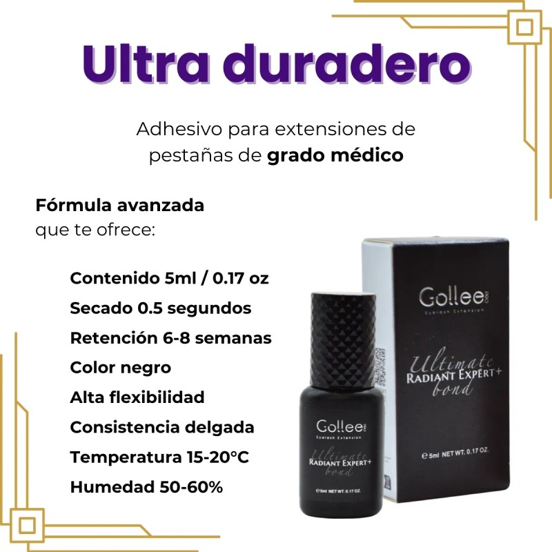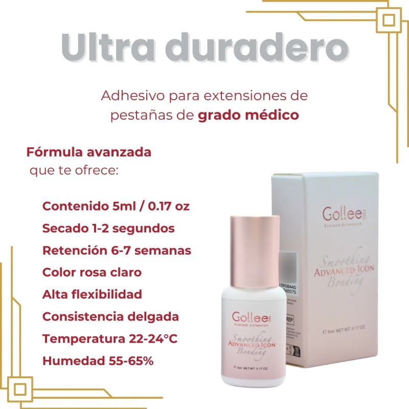 Este adhesivo de color negro intenso es el caballo de batalla de cualquier lashista, ideal para crear sets de pestañas con una base definida y un look dramático. Gollee ofrece varios modelos de adhesivos negros de alto rendimiento (como el Fix Genius o el A-02), caracterizados por su velocidad y poder de retención.