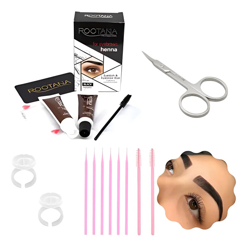 Kit Hena Ceja Hd Tipo Microblading Henna, Tijera, Anillo