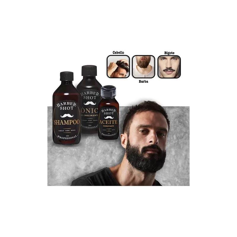 ¿Quieres lucir una barba y un cabello espectaculares, con más crecimiento, hidratación y salud? Entonces necesitas el Kit Barber Profesional, que incluye aceite, tónico y shampoo con bergamota y romero, ingredientes naturales que estimulan el folículo piloso y nutren el vello facial y la cabellera.
