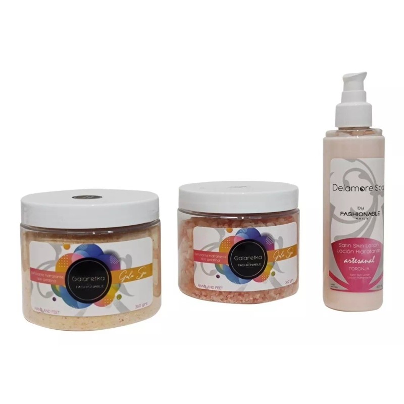 Kit jelly spa. Crea sensaciones mágicas en tu pedi gourmet. Nuestro kit galaretka spa contiene su tarro de gelatina de 360 ml. 1 tarro de sales delusoras y 1 loción hidratante de 200 ml. Se activa con Agua caliente para mejores resultados.