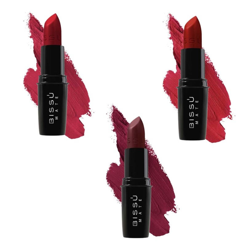Kit Labial Mate Bissú Tonos Rojos 3 Pzas (Rojo intenso, 3)