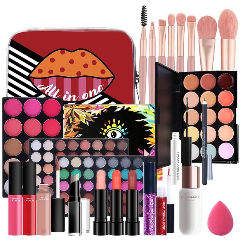 Kit Maquillaje para Mujer, Paquete de Inicio Esencial que Incluye Paleta de Sombras de Ojos, Juego de Brillo, Rubor, Base, Lápiz de Cejas, Incluye Juego de Brochas de Maquillaje (24 PCS)