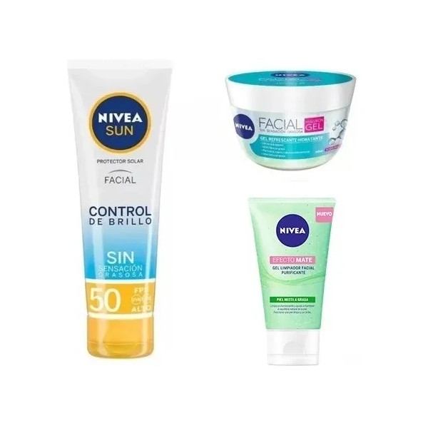 Kit Nivea: Gel Hidratante, Bloqueador Y Limpiador Piel Grasa