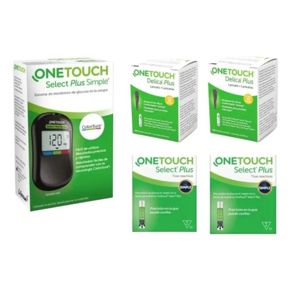 Kit One Touch Select Plus Simple+ 50 Tiras+ 200 Lancetas