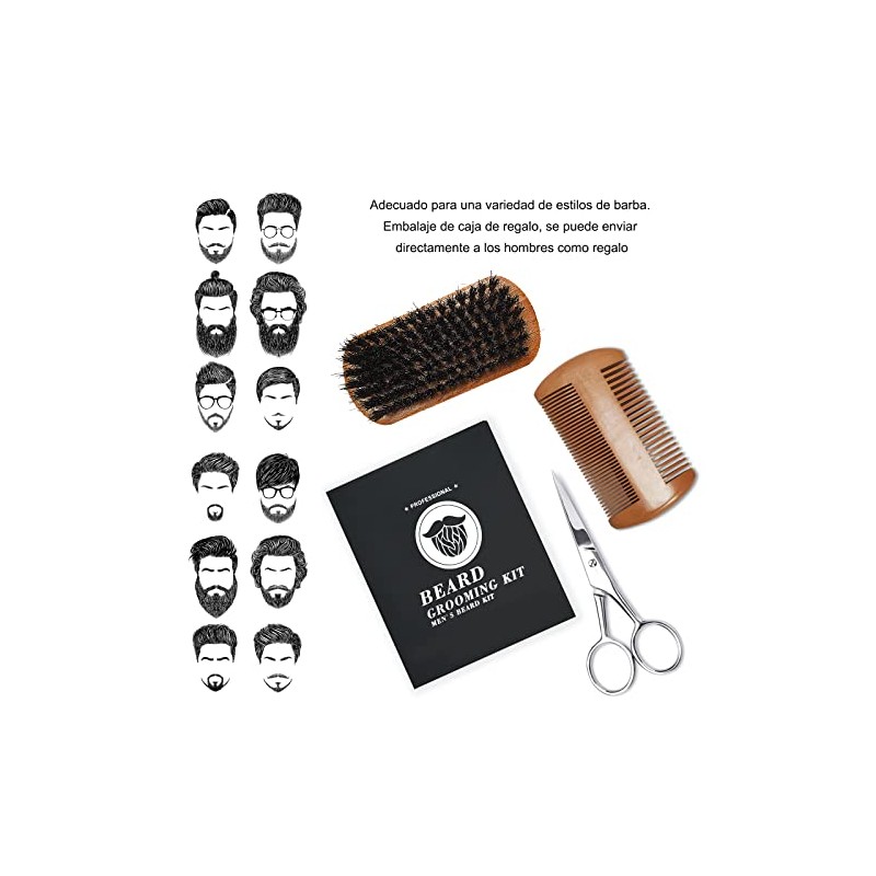 Kit para Barba Hombre, Cepillo, Peine y Tijeras, Set de Cuidado para Barba y Bigote, Ideal para Recortar, Moldear y Arreglar Barbas, Regalo para Hombres