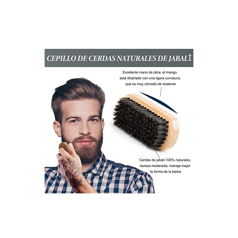 Kit Profesional de Cuidado para Barba Hombre – Peine, Cepillo y Recortadora para un Estilo Impecable ¡Luce una barba impecable y con estilo profesional todos los días. Este Kit de Cepillo y Peine para Barba es la herramienta perfecta para hombres que buscan mantener su vello facial ordenado, suave y saludable. Diseñado para desenredar incluso el vello más áspero y resistente, te ayuda a lograr un look definido y pulcro en casa o mientras viajas. Cada pasada de nuestro cepillo de cerdas de jabalí distribuye los aceites naturales de manera uniforme, suavizando el vello facial y aportando brillo y salud a tu barba. Su tamaño compacto lo convierte en el aliado ideal para llevar en tu maleta, mochila o neceser, permitiéndote cuidar tu estilo en cualquier momento y lugar. ✔ Características Principales: ✨ Cepillo para Barba de Cerdas Naturales Fabricado con cerdas 100% naturales de jabalí, firmes pero suaves.