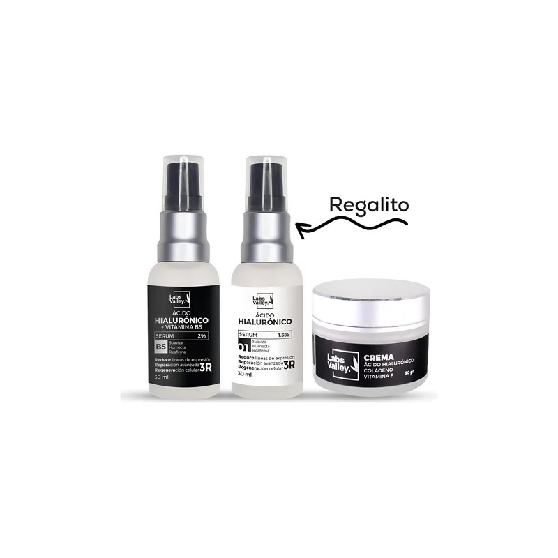 »» Paquete 1 Ácido Hialurónico con Vitamina B5 y 1 Crema Facial con Hialurónico + Colágeno + Vitamina E ««