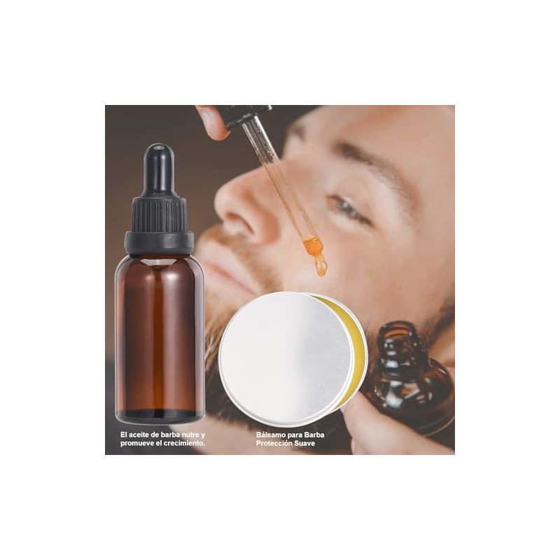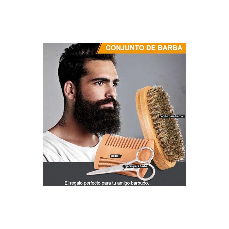 🌟 ⭐ Kit para Rasurar Barba Hombre, Juego 9 En 1 Kit Barba para Hombre Cuidado Con Aceite Barba y Cepillo Alaciador de Cabello, Crema, Tijera Etc, Exquisita Caja de Regalo para Padre, Esposo, Novio ⭐ 🌟