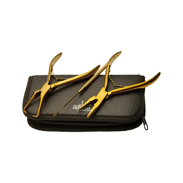 Kit Pinzas Extensiones Para Cabello 3 Pzs Profesional Aashta Color Dorado
