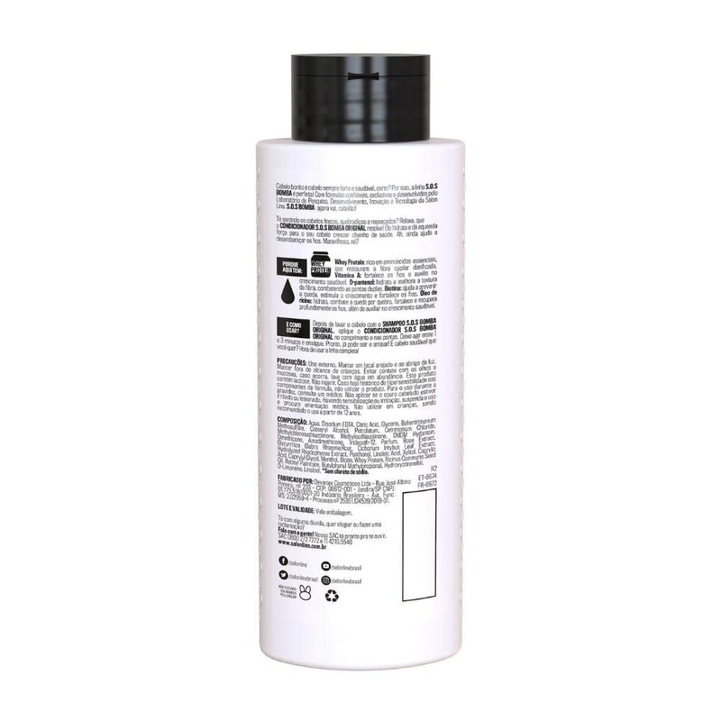 Kit Shampoo + Condicionador 200Ml Sos Bomba Original, Salon Line