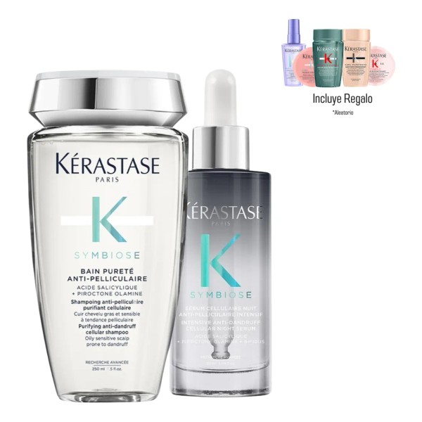 Kit Tratamiento Para Cabello Kerastase Symbiose Shampoo Bain Pureté Anti-Pelliculaire Y Serum Cellulaire Nuit Anti-Pelliculaire Intensif Anticaspa