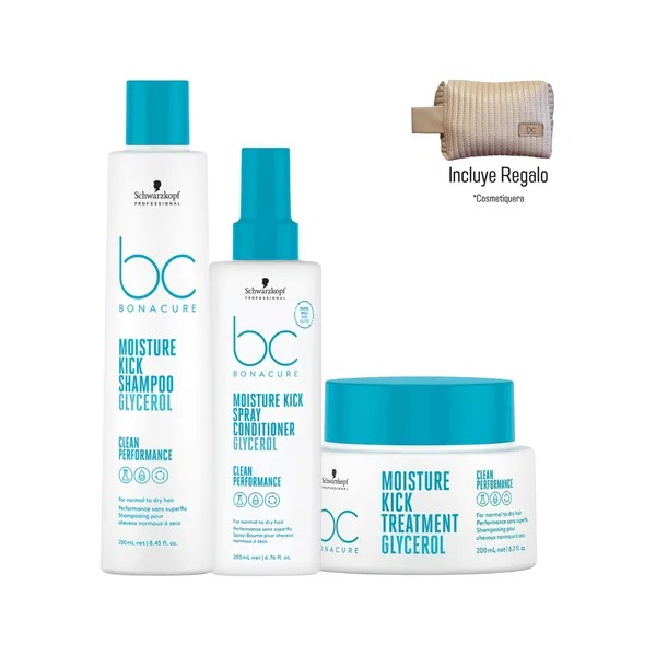 Kit Schwarzkopf BC Moisture Kick – Shampoo, Acondicionador en Spray y Mascarilla