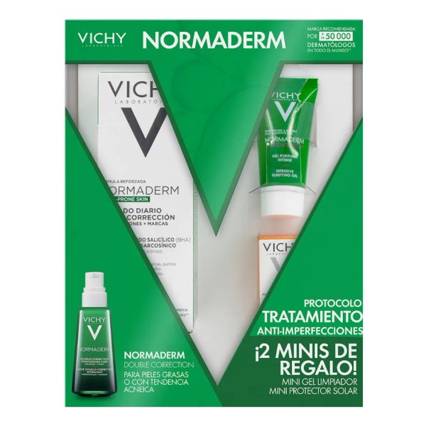 🔍 Palabras clave SEO: kit Vichy Normaderm México, rutina facial piel grasa y mixta, tratamiento antiacné con protección solar, Vichy doble corrección día y noche, limpiador Normaderm + tratamiento + bloqueador.