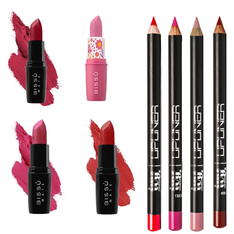 - CONTENIDO COMPLETO: Kit de maquillaje que incluye 4 delineadores Ivy, 3 labiales mate Bissú y 1 brillo mágico para looks versátiles y profesionales