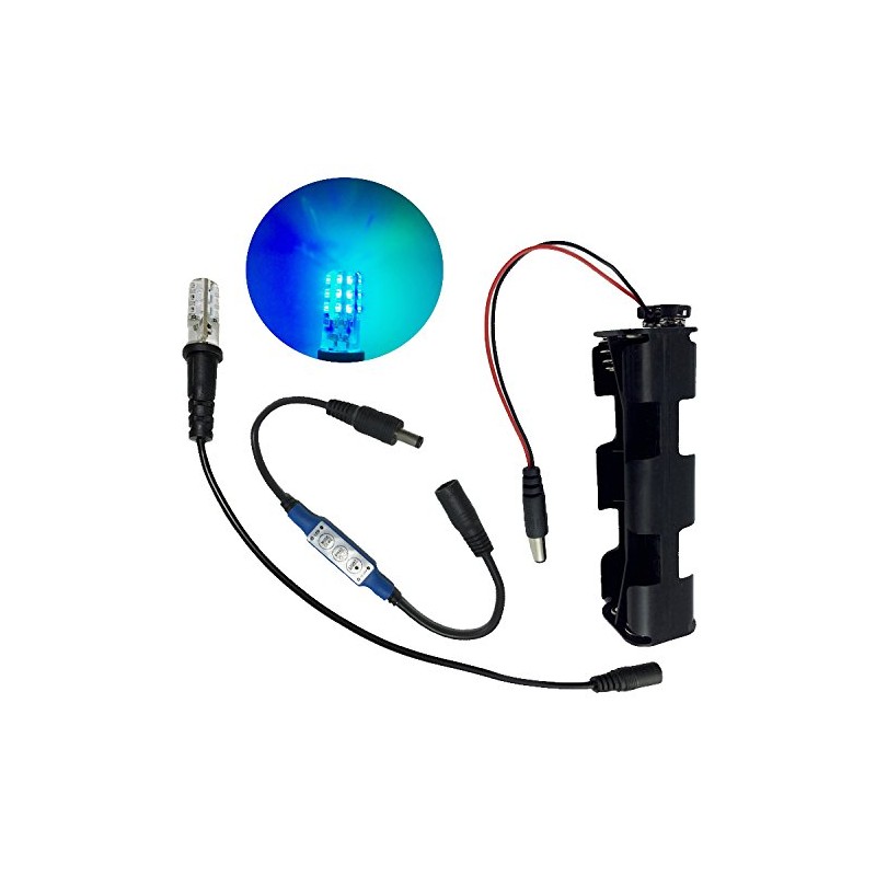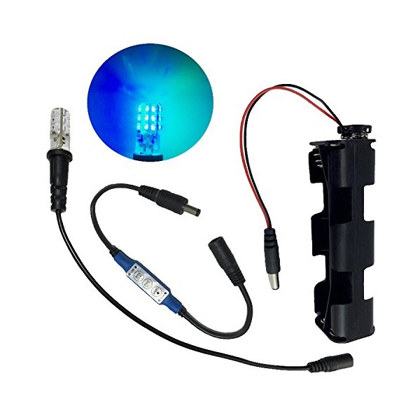 - The kit includes the Ocean Blue LED bulb and cable assembly, the WEC1 (Water Effects Control), and a battery holder assembly for 8 AA batteries (batteries not included, use AA alkaline batteries)). Kit parts are made in China
