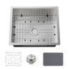 - Single Bowl Kitchen Sink Combo: Including 11Gauge SS 22in kitchen sink, stainless steel bottom grid, silicon mat, retractable colander and drain assembly for bar sink. Built-in accessories fit nicely within the undermount kitchen sink. Single bowl sink can meet your needs while offering practicality and ease of use.